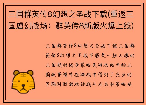 三国群英传8幻想之圣战下载(重返三国虚幻战场:群英传8新版火爆上线)